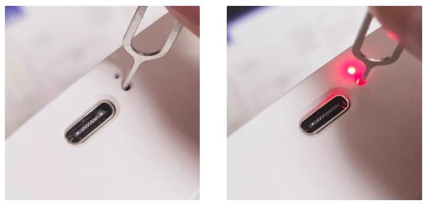 이후, 아래와 같이 리셋 핀을 사용하여 기기를 리셋하고, 어플에 등록해주었다.